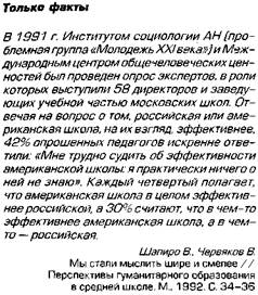 Призовые места, по оценкам опрошенных педагогов, с довольно высокими показателями заняли такие направления совершенствования содержания образования, как «дифференциация обучения» (54%, в том числе 50% городские учителя и 59% сельские учителя), «введение разноуровневых учебных курсов по каждому предмету» (соответственно, 48,47 и 50%) и «индивидуализация обучения» (41, 41 и 41%). Далее в порядке предпочтительности следуют: «целостность содержания образования» (33, 34 и 32%), «гуманизация содержания образования» (31, 34 и 27%), «пересмотр фактологического содержания предметов» (31, 29 и 34%), «введение единого базового компонента в каждый предмет» (26, 30 и 20%), «интеграция учебных предметов» (25, 22 и 30%), «введение новых, нетрадиционных предметов» (21, 26 и 12%), «упрощение содержания образования» (18, 17 и 20%), «гуманитаризация содержания образования» (15, 18 и 10%). В то же время заметно уменьшилось за прошедшие годы число сторонников таких направлений совершенствования системы образования, как «индивидуализация обучения» (с 55% в 1994 г. до 41% в 1998 г.), «дифференциация обучения» (с 63 до 54%), «введение новых, нетрадиционных предметов» (с 37 до 21%). Снизились также оценки значимости «интеграции учебных предметов» (с 27 до 25%), «введения разноуровневых учебных курсов по каждому предмету» (с 54 до 48%), «пересмотра фактологического содержания предметов» (с 39 до 31%). Дальнейшее движение в сторону индивидуализации обучения многим респондентам не представляется реальным в условиях нынешнего положения школы (переполненность классов, отсутствие необходимой материально-технической базы, перегруженность учителей, их нищенская, своевременно не выплачиваемая зарплата, и т.п.). Уменьшение доли сторонников «введения новых, нетрадиционных предметов» является, наверное, свидетельством того, что экстенсивное направление реформирования образования путем расширения «ассортимента» учебных предметов, факультативов, спецкурсов начинает изживать себя. Учительский корпус требует качественного улучшения преподавания уже получивших в школе «прописку» традиционных и нетрадиционных дисциплин. 7В1 Менее популярной стала и идея «интеграции учебных предметов». Очевидно, это прогрессивное в своей основе направление натолкнулось на серьезные препятствия, связанные с нынешними неблагоприятными обстоятельствами, в которых находится школа, с недостаточной подготовленностью кадров. Как известно, на начальном этапе реформирования системы образования акцент делался на преодоление былого засилья стандарта, монотонного единообразия в обучении и воспитании подрастающего поколения, на всемерной дифференциации, индивидуализации образования. Возможно, на этом пути уже достигнуто состояние определенного насыщения, образовательный процесс становится все более разноликим, появляется опасность утраты его единства в масштабах страны, отдельных регионов. Очевидно, реакцией на эту тенденцию стала явно возросшая тяга педагогов к восстановлению на новом более высоком уровне целостности, внутреннего единства образовательного процесса. В ходе проводимого нами социологического мониторинга состояния и тенденций развития общеобразовательной школы в Красноярском крае в «Анкете учителя» при последнем опросе (1998 г.) был поставлен вопрос: «Как Вы относитесь к основным установкам планируемой реформы школьног