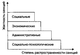 Если рабочий первый раз не выполнил задание, к нему применяют самый мягкий вид наказания — социально-психологические санкции. Это просто дружеское предупреждение, групповые формы воздействия. Когда работник систематически не выполняет возложенные на него обязанности, то его поступки квалифицируются как манкирование служебным долгом. К нарушителю применяют административное взыскание — это приказ директора, распоряжение мастера или начальника цеха, где работника официально предупреждают: продолжение подобных действий повлечет за собой более строгие санкции, пора одуматься. Если не действует и оно, наступает очередь для экономических санкций — работника штрафуют или переводят на нижеоплачиваемую должность. Наконец, для злостных нарушителей, действия которых равноценны молчаливому саботажу, существует высшая мера наказания — увольнение с предприятия. Она является социальной санкцией, так как переводит индивида из одного статуса в другой, т.е. из работающего в безработные.
