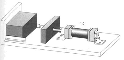Пневматична система складається з ланцюга елементів різних груп, сполучених між собою певним чином. У загальному випадку керування робочим органом (циліндром) здійснюється за допомогою розподільника. При цьому вибір розподільника (число ліній, число положень перемикання і спосіб керування переміщеннями) залежить від кожної конкретної задачі. Розглянемо приклад вирішення задачі автоматизації технологічної машини: шток циліндра односторонньої дії з великим діаметром поршня при натисненні на кнопку повинен затиснути деталь (рис. 4.1).