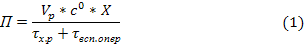 где П - производительность реактора; Vp - объем реактора; c0 - начальная концентрация реагента в загружаемой смеси; X - степень превращения реагента; τx.p - время проведения химической реакции; τвсп.опер. - суммарное время вспомогательных операций (предварительных и заключительных операций). При увеличении времени на реакцию возрастает степень превращения реагента, поэтому длядостижения максимальной производительности необходимо исследовать ее зависимость от степени превращения или времени реакции.
