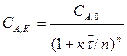 Рис. 9. Распределение концентрации реагента по длине реактора: Теперь посмотрим, как замена одного аппарата смешения каскадом повлияет на распределение концентрации реагирующего вещества по длине (если считать весь каскад одним аппаратом). Рис. 9 изображает изменение по длине аппарата концентрации реагента А, который расходуется в реакции А → R. Кривая / относится к аппарату вытеснения, горизонталь 2 — к -аппарату смешения; ход изменения концентраций в каскаде из трех аппаратов смешения характеризует ступенчатая линия, где цифрой 3 обозначена первая ступень каскада, 4 — вторая, 5 — третья. Для последней ступени концентрация А такая же, как в едином аппарате смешения. Но для всех предыдущих ступеней она больше, здесь соответственно выше и скорость реакции. С ростом числа ступеней каскада ломаная линия на рис. 9 будет приближаться к кривой /, и если ступеней достаточно много, то общий характер распределения концентраций приближается к идеальному вытеснению. Несложно получить и количественные оценки. Для этого рассматривают протекание реакции сначала в первом аппарате каскада; затем переходят ко второму, учитывая при этом, что на входе во второй аппарат концентрации веществ такие же, как на выходе из первого; далее переходят к третьему и т. д. Для реакции первого порядка
