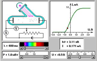 Рис. 2.7. Окно виртуальной модели «Фотоэффект»