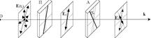Существует такое направление в кристалле, при распр.света вдоль которого двойное лучепрелом.не наблюдается, т.е.сохр.как направление распространения, так и поляризация – это опт.ось. В зав-ти от соотн. м/у главными диэлектр.проницаемостями εxx, εyy, εzz все кристаллы делятся на 3 группы: изотропные, одноосные и двуосные. εxx=εyy=εzz - изотропные, εxx≠εyy≠εzz - двуосные, εxx=εyy≠εzz - одноосные. Падающий свет можно представить как сумму двух ЛП волн со взаимно перп.направлениями поляризации: первая волна поляризована в плоскости, перп. к главному сеч.кристалла (обыкновенная), а для второй пл-ть поляризации совпадает с главным сечением (необыкновенная). Лучевые пов-ти используют для построения хода лучей при преломлении на границе анизотропной среды с изотропной - построение Гюйгенса. На границу раздела сред падают 2 луча под углом φ, причем второй приходит на границу на время τ позже первого. Построим лучевые поверхности с центром в начале координат (точке падения первого луча), соответствующие времени задержки τ. Тогда плоскости, касательные к лучевым поверхностям, будут являться фронтами волн (векторы no и ne).Лучи, проведенные из начала координат в точки касания, дадут направления распространения лучей (векторы So и Se). Для обыкновенной волны направления no и So будут совпадать. Отметим, что закон преломления в привычной нам форме справедлив для волновых нормалей, т.е. углы преломления задаются векторами no и ne.