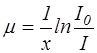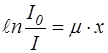 Коэффициент пропорциональности m называется коэффициентом ослабления света. Разделив переменные и интегрируя выражение (1) в пределах от I0 до I, получим