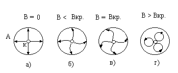 При > электроны не достигают анода (рис.2,г), и анодный ток падает до нуля. Следует отметить, что траектории движения электронов не представляют собой окружности, так как скорости электронов изменяются под действием силы электрического поля. Траектория движения в этом случае представляет собой эпициклоиду.