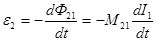 Коэффициент пропорциональности М21 называется коэффициентом взаимной индукции контуров или взаимной индуктивностью контуров. Он зависит от формы и взаимного расположения контуров 1 и 2, а также от магнитных свойств окружающей среды. При изменении тока в первом контуре магнитный поток через второй контур изменяется, следовательно, в нем наводится ЭДС взаимной индукции: