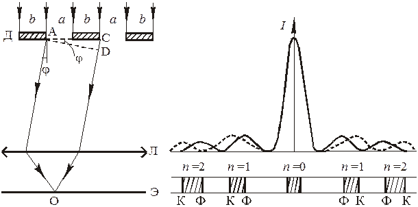 где АС – постоянная решетки, равная сумме длин прозрачного a и непрозрачного b промежутков: АС = d = a + b.