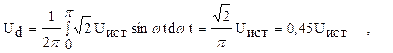 Среднее значение выпрямленного напряжения на нагрузке можно найти интегрированием этого напряжения в пределах периода: