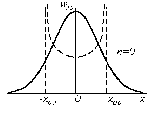Рис.1.6. Распределение плотности вероятности для трех состояний квантового гармонического осциллятора