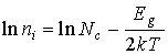 Рассуждения, приведенные выше при выводе формулы для электропроводности металла, справедливы как для электронов проводимости, так и для дырок. Для дырочного полупроводника удельная электропроводность дырок где p - концентрация дырок. В общем случае удельная электропроводность определяется как электронами, так и дырками: Электронная составляющая проводимости определяется первым слагаемым в формуле (4.14), второе слагаемое связано с дырочной проводимостью полупроводника. Величина удельной проводимости полупроводника и ее температурная зависимость зависят от концентраций носителей (электронов и дырок) и их подвижностей, которые в свою очередь определяются типом полупроводника. В собственном полупроводнике концентрации электронов и дырок одинаковы (n = p = ni = pi, где ni и pi - собственные концентрации носителей). Тогда удельная электропроводность c собственного полупроводника будет равна Электропроводность собственного полупроводника называют собственной электропроводимостью и обозначают обычно с. Концентрация электронов в собственном полупроводнике определяется выражением (3.17). Логарифмируя это выражение, получим Первое слагаемое в этом выражении слабо зависит от температуры, поэтому график зависимости