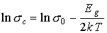где 0 - значение удельной электропроводности полупроводника при T Логарифмируя последнее равенство, получим Таким образом, график зависимости