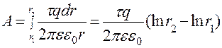 где- q/ – заряд, образующий поле; q – перемещаемый заряд. Работа поля образованного бесконечной заряженной нитью (цилиндром)
