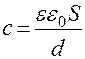 Два проводника, между которыми имеется электрическое поле, все силовые линии которого начинаются на одном и заканчиваются на другом проводнике называются конденсатором, а сами проводники – обкладками. В конденсаторе заряды на обкладках равны по величине и противоположны по знаку. Электроемкость конденсатора равна отношению величины заряда на одной из обкладок к разности потенциалов между ними: Единица измерения электроемкости – фарада (Ф). 1Ф – емкость такого конденсатора, у которого при наличии заряда в 1Кл разность потенциалов между обкладками 1В. В системе СГСэ – емкость измеряется в сантиметрах. 1Ф = 9 х 1011см. Емкость проводника не зависит от того, каким зарядом он обладает, т. к. чем больше заряд, сообщаемый проводнику, тем больше разность потенциалов. Проводник характеризуется электроемкостью, даже если он не заряжен. Емкость проводника зависит от его формы и размеров, а также присутствия и расположения окружающих тел. Емкость плоского конденсатора: где S – величина поверхности одной пластины; d – расстояние между плоскостями. Емкость цилиндрического конденсатора и коаксиального кабеля: