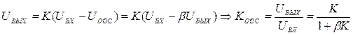 где К – коэффициент усиления самого ОУ, КООС – коэффициент усиления усилителя с отрицательной обратной связью.