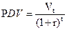 где PDV – дисконтированная стоимость (доход или затраты); Vt –будущая стоимость; r – ставка дисконтирования; t – период времени. б) дисконтирование доходов и затрат с несколькими или разными суммами по годам: