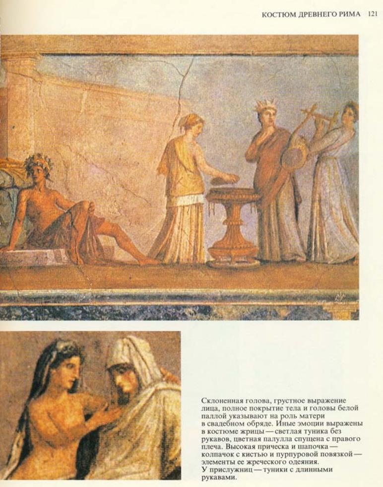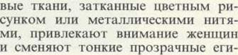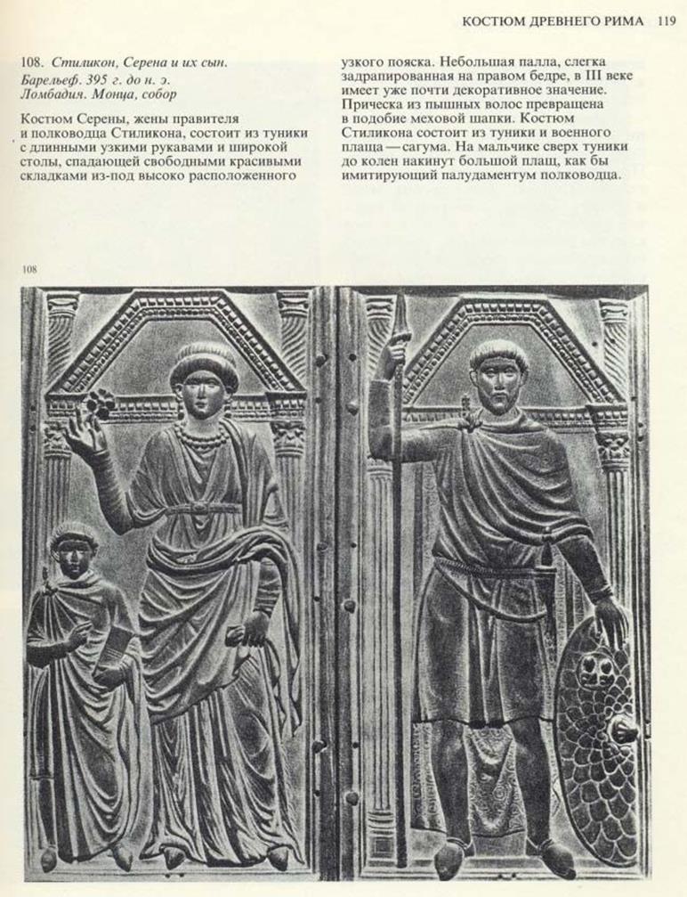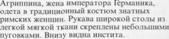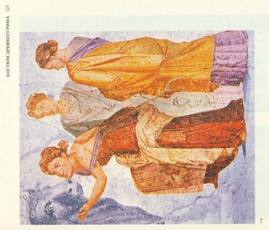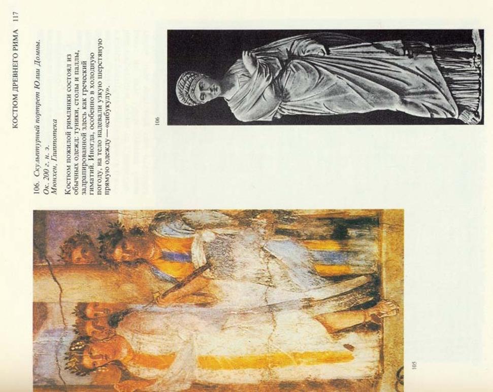 лову (ил. 1119). С течепием времеян римскне жен- щнны оі с і упают от дщвних. освя- іцешімz преданием обычаев и iioпa- дают под все большее влняпие элли- ННС7'И НІ2С11ОГС1 IIU£WO11Б И ЩЦИИ. ЙЖ И в вовце республихапскпй этіохх iiJio г- ные шерстяітіе тааші не удпвлетво- ряю г их вкус. Чем тоньше была TBBRb, TCM В bfГOДRtlfl 0 HIt О І-ГСН Я4l 11 красоту римляноя, тем интереснее можно бы io создавать из нее оде:я- ду (нл. 105, 110), Обнлие рабоя upи— водкт г тому. что все домышяие за- ботит јтхмсzие жеящхнъі гіереклиды- Вкют на их плсяи, а самк лредаю тcq кулъ гу кокетс гвы и красоты. Изобре- тевтгме Востохом благовоиные мu— зи, прнтяраіпія, косметняеские сред- ства наволняют Рим. Возможность посещать обществеяііы е мес га ис- пользуется богатыми яіенщинаіvгн для того, ятобы, соиерничая друг с другпм, вы ставлять длв всеобщего обозреняя драгоценности. От завое- важного Егиііта римляне заимству- ют эллияистичесяігіі егнпеі схий жен— ский аостюм, н па ваяое-то время пн распространяется в Риме. Знатные римлявкя увлепалпсь егнпетскнми ухрашениямя. В l II веке римлянки увлекак›тся RBQOДH ОГ1 ОД ЖДОЙ ДПЛІЧ it tЩ Н, а в Визttнтийсsой империи н в эпоху европейсаого средневеяовья «далма- тнва» — туника срсдііей длины чаще всего из плотиых тканей с корпткн-
