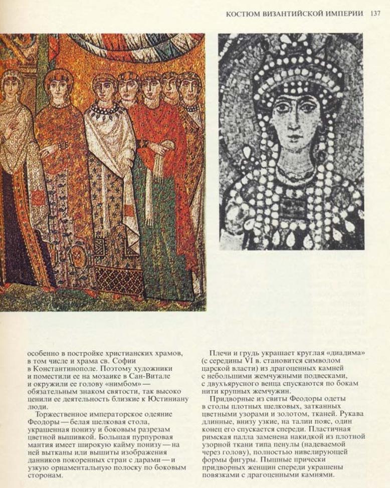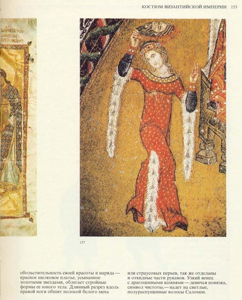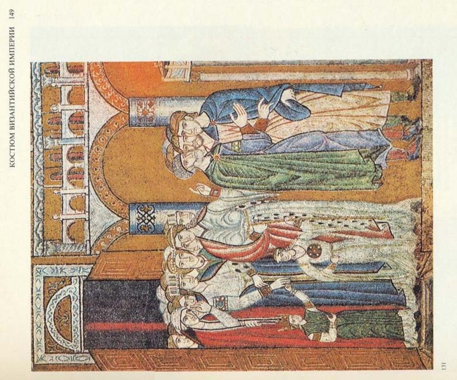 лудаметттума. фхбула с подвесга:ии вых х ocoocппo ларковых ткк1Јей раз- из драгощенпы х вампеіі. золотой ве— внвается па прсітяжении е tо.іетнй. нец, украшсііньгіі многгпіветньІ:•ін яа- С помощью т аких тханей лучше все- мнями,— все дол›яно было проіззво- го можно было впплотнть виsаііі нй- дить нензгладнмое впечад леиие на скую ядею вііешнегр оGлика челове- подоапкы х (ил, l 1 6). хи, Действхтельпо, платкая. лочтк На приблнвіеявых имііераторіі негнуіиа яся ткаігь с круііиым риеун- sс›стюм мекее itыltixъiй, тахх‹с состо- хом iipx ітристом лрямом пoxpoe Со- ящкй из полудлхппой тункхи и nJtu- зли еьлк ккх бы фут ляр. iiо Јіеі ко i Jru с лурпуровъім хвадры rp›vi — «тиб- можіЈо прг›следк i ъ ни тгримщ›с хмле- лиояом», gвляющимся знахом высо- ратирскпі г› костгс›ма IX—XI вехов кого обlLLествсннаго паложения, (кл. І?-0. 12 l, 1 36). Плеяи н грудк I униуи украшены Ахз нвные i op1 cisыe и типломіітн- вышнвкоё; гакое расположеііие вы- чыхие отношения с Малой Азней шивви стало традициониы м в Внзан- и особсііііо с Персией l³Fº³³ º* ³ *º- тии н перешли на одежду простолю- xiv, что восточные. главншм obpa-
