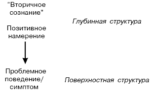 Смысл данного утверждения Фрейда состоит в том, что человек изначально не является иррациональным, злым, подверженным маниям, страхам и не бывает негативно настроенным. Наши инстинкты и импульсы первоначально развились для того, чтобы способствовать нашему благосостоянию. Маниакальные или агрессивные реакции развиваются у людей как следствие ограничений, вызванных их собственными моделями мира. Одним из наиболее важных терапевтических принципов НЛП является принцип “позитивного намерения”. Фундаментальной предпосылкой данного принципа является то, что системы (в особенности, самоорганизующиеся или “кибернетические”) эволюционируют в направлении адаптации. Иными словами, некая движущая сила стремится оптимизировать какой-то важный элемент в системе или пытается поддерживать эту систему в состоянии равновесия. Таком образом, конечной целью всех действий, ответов или реакций внутри системы является адаптация. Ради этого они, реакции и поведение, и появились в том контексте, когда это было необходимо. Можно сказать, что на некотором уровне все поведение имеет (или в какой-то момент имело) “положительное намерение”; и это положительное намерение является одним из ключевых элементов “глубинной структуры”, лежащей в основе “поверхностной структуры” поведения или симптома. Положительной целью страха часто служит безопасность. За агрессией нередко скрывается потребность в защите. Положительной целью гнева может быть сохранение границ. Ненависть часто имеет своей положительной целью мотивацию человека к действию. Проблемы возникают, когда карта мира человека представляет эти ответы как единственную возможность для достижения позитивных целей. В этом случае человеку необходимо помочь найти иные возможности для достижения своих целей. Если смотреть с этой точки зрения, тогда любое поведение, независимо от того, каким бы злым, ненормальным или странным оно ни казалось, является лучшим из доступных данному человеку возможностей в данный момент времени при его данной модели мира. Иными словами, с точки зрения участника, в определенном контексте всякое поведение воспринимается или воспринималось как необходимое или уместное. Таким образом, еще одна причина того, что “пациент борется столь энергично против освобождения от своих симптомов и против того, чтобы его психические процессы вернулись к нормальному функционированию”, состоит в следующем: позитивная цель симптомов пациента не была определена или о ее достижении не позаботились в достаточной мере. Другими словами, “те мощные силы, работу которых мы здесь наблюдаем, это, должно быть, те же силы, которые обусловили образование данного состояния”. То есть мы имеем дело с позитивным намерением или позитивной целью, для достижения которой это поведение изначально возникло. И хотя ситуация, в которой изначально появилась проблемная реакция, уже отошла в прошлое, позитивное намерение или цель, лежащие в основе этой реакции, все еще продолжают быть значимыми. Когда позитивные намерения и цели проблемного состояния или симптома не достигнуты, тогда, по странной иронии, “нормальное функционирование” может также приводить к проблематичным или патологическим результатам. Человек, перестающий быть агрессивным, но не имеющий иного способа защиты, просто зам