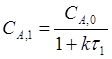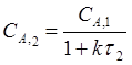 Концентрация на выходе из второго реактора представлена следующей формулой
