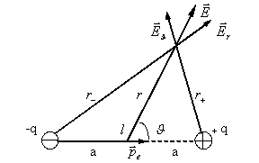 Электр өрісінің суперпозиция принципі бойынша: мұндағы: Электрлік дипольдің электр өрісінің потенциалы келесі өрнекпен анықталады: Енді электрлік дипольдің электр өрісінің кернеулігін анықтайық. Берілген нүктедегі дипольдің тудыратын электр өрісінің кернеулігін екі құрамаға жіктеуге болады: Электрлік дипольдің электр өрісінің кернеулігі келесі өрнекпен анықталады: