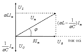 ток пен кернеу арасындағы фазалар айырмасы екенін ескерсек, ток күшінің формуласы келесі түрде жазылады: