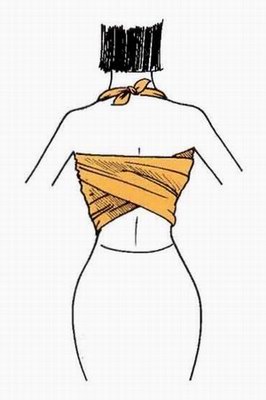 Такой топ подчеркивает достоинства фигуры и выглядит очень элегантно. С ним хорошо сочетается драпирующаяся юбка - и ваш вечерний костюм готов. Открытая спина делает умело повязанный топ еще привлекательнее - от вас просто не оторвать глаз!