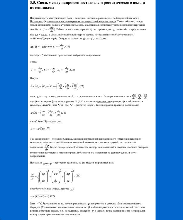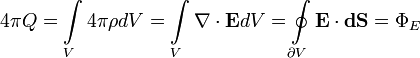 равен сумме потоков, создаваемых каждым зарядом при отсутствии остальных, равен просто где суммирование производится только по зарядам внутри поверхности (каждый из тех, что снаружи, дает вклад 0). Теорема доказана. Это доказательство более формальное. 1. Исходим опять из закона Кулона (в этом параграфе будем использовать систему СГС и говорить для определенности о теореме поле E, а не D): 2. Кулоновское поле удовлетворяет дифференциальной форме закона Гаусса: Это можно проверить[16] прямой подстановкой[17] формулы (1) в (2). 3. Исходя из принципа суперпозиции полагаем, что поле, создаваемое многими зарядами, также удовлетворяет этому дифференциальному уравнению (попутно замечая, что уравнение это линейное, а следовательно принцип суперпозиции применим). 4. Пользуясь формулой Гаусса — Остроградского, сразу получаем: