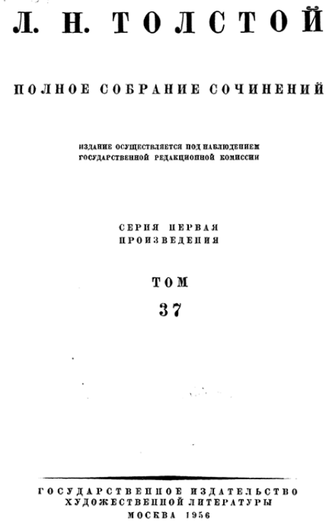 Подготовлено на основе электронной копии 37‑го тома Полного собрания сочинений Л.Н. Толстого, предоставленной Российской государственной библиотекой Электронное издание 90‑томного собрания сочинений Л.Н. Толстого доступно на портале www.tolstoy.ru Если Вы нашли ошибку, пожалуйста, напишите нам info@tolstoy.ru