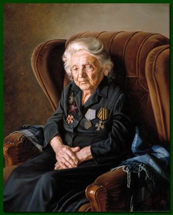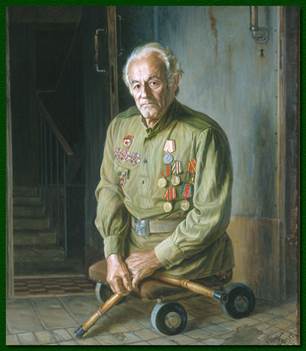 Воин-интернационалист инвалид О.Резников Прожектористка Клюева. Холст, масло В День Победы. Пулемётчик П.П.Шорин Ветеран Черноморского флота В.А. Стратанович (художник Шилов А.М.) http://www.amshilov.ru/gal6.html