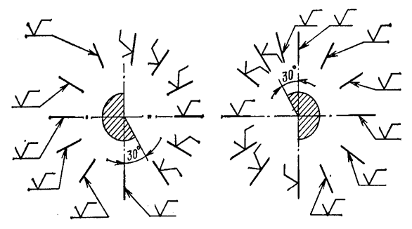 Рис.6 - Расположение знаков обозначений шероховатости, не имеющих полок