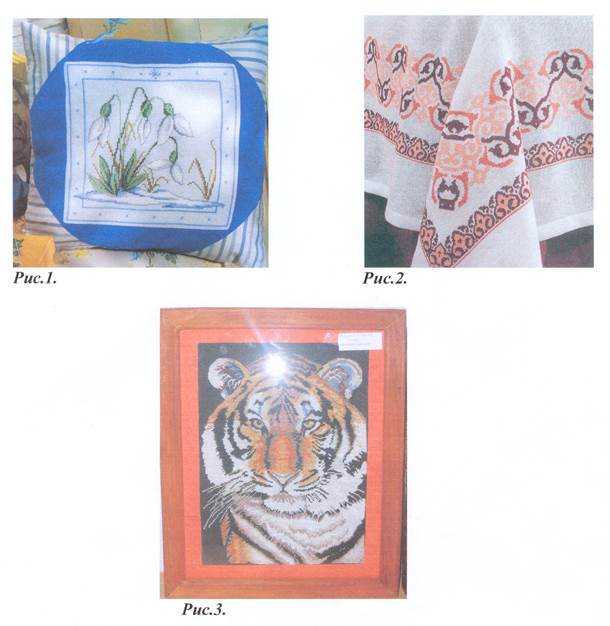 Разработка идей, вариантов 1. Подушка, вышитая крестом (рис.1). 2. Скатерть, украшенная вышивкой крестом (рис.2). 3. Картина, вышитая крестом (рис.3).