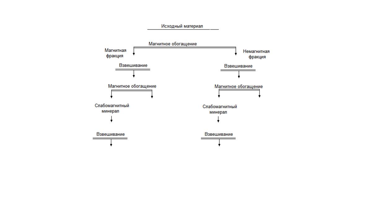 Порядок выполнения работы: 1. Приводят во вращение валок, включают ток в катушках сепаратора и устанавливают нужную силу тока. 2. Навеску исходного материала загружают и проводят магнитное обогащение. 3. Получаемые при обогащении магнитные и немагнитные фракции взвешивают. 4. После взвешивания проводят еще раз магнитное обогащение. 5. Полученные продукты взвешивают.