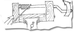 Материалы Прежде всего проволока (стальной проволоки на кольчугу идет как минимум килограмм 7-8), стержень нужного диаметра и несколько деревянных брусков. Проволока не должна быть алюминиевой!!!!! На это есть три причины: она слишком мягкая, выглядит как алюминий, и пачкается. Стальная проволока так же доступна, выглядит лучше и гораздо прочнее. Проще всего достать - купить - проволоку в магазинах, торгующих сварочным оборудованием. Они продают, например, стальную проволоку с медным покрытием диаметром 1,2 миллиметра, которая очень хорошо подходит для колец с внутренним диаметром 6 мм. Но для первого раза лучше, наверное, взять проволоку потолще, чтобы можно было делать кольца побольше (как уже говорилось, внутренний диаметр кольца должен быть примерно равен диаметру проволоки, умноженному на 5). Но не стоит расстраиваться, если диаметр колец в уже сделанной части перестал вас удовлетворять: некоторые кольчуги (в частности, кольчуга XIII в. из Изяславля) делались с использованием колец 3-4 разных размеров. Кроме того, кольчужные феньки можно использовать в качестве подарка. Стержень: диаметр его должен быть равен внутреннему диаметру кольца. Лучше всего подойдет медный или латунный пруток (разумеется, прямой). Длина - как минимум сантиметров 30. На расстоянии 1 см от любого конца сверлится сквозная дыра диаметром чуть большим, чем диаметр проволоки. В принципе, этого достаточно: стержень зажимается в тисках так, что дыра торчит над самыми губками, в дыру вставляется кончик проволоки - и "равномерными круговыми движениями" наматывается пружинка. Тем же, кому это надоело (а надоедает оно быстро) самое время вспомнить о брусочках и сделать mandrel, то есть машинку-вороток: