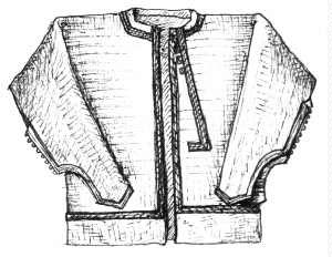 Здесь возможно несколько вариантов: можно взять проволоку потолще (тогда полоса получится жесткой и без кожаных лент), можно для той же цели попробовать сплющить кольца... Все эти способы правильные, и все они и использовались в средние века. Единственный "неправильный" (то есть не подтвержденный реальными находками) способ заключается в использовании для ворота плетения 6-в-1 или 8-в-1. Теперь осталась последняя, и самая трудная задача: как застегнуть ворот и закрыть щель на груди? Решений может быть много. В поздних кольчугах и кольчужно-пластинчатых доспехах использовались крючки различной формы (зацеплявшиеся за специальные петли или просто за кольца кольчуги), ремни с пряжками и даже шарнирные петли. К сожалению, из-за редкости находок кольчуг более раннего времени нельзя с уверенностью сказать, как именно застегивались на них вороты. Пожалуй, самым простым и верным решением будет обычная шнуровка.