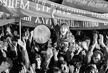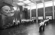 Торжественная церемония посвящения октябрят в пионеры воДворце пионеров (1984 год, Москва) Основная статья: Всесоюзная пионерская организация имени В. И. Ленина Основная статья: Комсомол