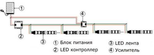 Схема подключения светодиодной ленты 5050 RGB (свыше 15м.п.)
