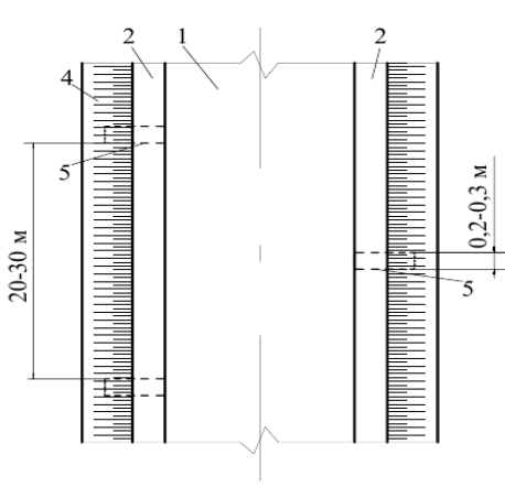 Рис. 20. Схема расположения поперечного дренажа мелкого заложения: 1 – обочина; 2 – проезжая часть; 3 – поперечный дренаж