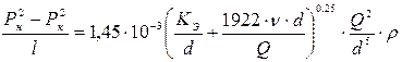2) Разность квадратов давлений на концах участков сети среднего давления определяется по формуле: