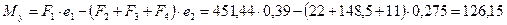Изгибающие моменты от действия вертикальной нагрузки, возникающие на обрезах фундамента: