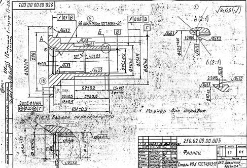 Химический состав Назначение детали. Описание ее работы в сборочной единице. Представленная в данном дипломном проэкте деталь "Фланец" относится к классу деталей тел вращения. Деталь фланец относится к деталям типа тел вращения, включает в себя внешние и внутренние цилиндрические поверхности, торцы, фаски, пазы и отверстия, внутренние канавки. Их геометрическая форма и размеры не вызывают значительной трудности для обработки на металлорежущих станках. Рассматриваемая деталь представляет собой тело вращения. Она используется в шлицевых соединениях ведущих и ведомых валов. «Фланец» так же обеспечивает соосность валов. Технологически шлицевые соединения сложнее шпоночных, но обеспечивают хорошее центрирование втулки на валу и позволяют передавать значительные вращающие моменты, поскольку большое число шлиц обеспечивает меньшую концентрацию напряжений. Поэтому шлицевые соединения и имеют широкое применение. Служебное назначение фланца – ограничение осевого перемещения вала, установленного на подшипниках в изделии путем создания необходимого натяга или гарантированного осевого зазора между торцом фланца и торцом наружного кольца подшипника. Для изготовления детали «Фланец» используется сталь 40X ГОСТ 4543-71. Данная сталь относится к разряду конструкционных углеродистых качественных сталей. Этот материал имеет следующие физические и химические свойства: