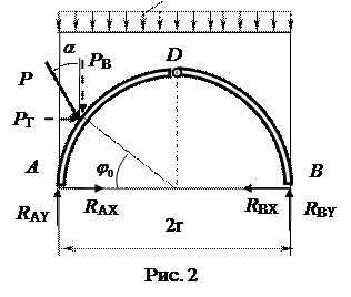 Таблица 2 – Значения N 2, Q 2, M 2 на 2-м участке арки (0 ≤ φ 2 ≤ 135о)