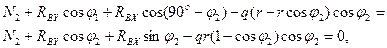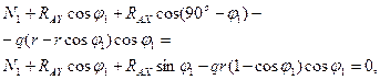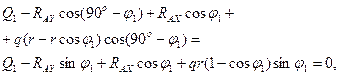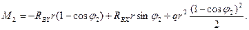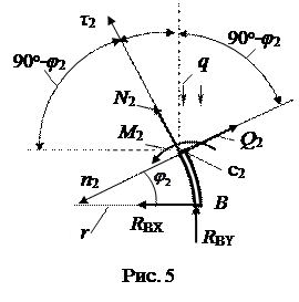 Рассмотрим определение N 2, Q 2, M 2 на 2-м участке арки. Расчетная схема представлена на рис. 5. Положение сделанного мысленного рассечения арки II-II определяется произвольным острым углом φ 2 (0 ≤ φ 2 ≤ 180о– φ 0=135о). Условия равновесия имеют вид: