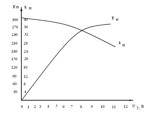 Рисунок 2.1 - Характеристика управления Зависимости Еп = f (Uу) и kп = f1 (Uу) приведены на рисунке 2.2.