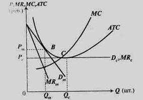 Рис. 7.3. Сравнение монополистической и совершенной конкуренции