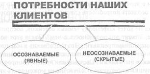 «цена слишком высокая» или «я бы мог приобрести ваш товар, но думаю, что вы вряд ли сможете поставить его вовремя, ваши образцы не соответствуют стандартам и ГОСТам» и т. д. Тренер. 10 минут прошло. Каждая команда, выберите, пожалуйста, одного представителя от вас, который подойдет к доске, зачитает записанные вами возражения и наклеит их на доску. Важно, чтобы каждый последующий оратор только добавлял то, что еще не прозвучало. Поэтому будьте внимательны. Итак, первая команда, кто от вас подойдет к доске, зачитает и наклеит карточки? (Тренер внимательно смотрит на команду и жестом приглашает подойти к доске.) Действия тренера. Тренер организует пространство модерации. Каждый участник поочередно подходит к доске с карточками, зачитывает их и наклеивает на ватман. Тренер следит, чтобы не было повторений. Если замечает повтор, просит остальные команды быть внимательными, следить и выбирать свои карточки так, чтобы не терять время на то, что уже сказано. Реакция группы и управление тренера группой. Группа становится более внимательной к происходящему. Тренер отвечает за скорость и громкость. Если выступающие говорят тихо, стоят спиной к аудитории, тренер громко повторяет высказывание, просит обращаться к группе, а не смотреть только на доску. Если этого не делать, то группа может рассыпаться на подгруппки и начать перешептываться. Тренеру важно быть динамичным на протяжении всей модерации. Если участники отвлекаются, спрашивать их: «Я вижу, вы уже что-то заметили, что-то обсуждаете. Давайте обсудим это все вместе. Итак, что вы заметили?» Это позволяет сделать работу группы более слаженной и сотрудничающей. Эффект от упражнения. Создается общее впечатление, что товар не так хорош, и продать его действительно трудно. Группа осознает, что для продажи нужно знание технологий. Тренер также может сделать на этом акцент. МИНИ-ЛЕКЦИЯ1 «ПОТРЕБНОСТИ НАШИХ КЛИЕНТОВ» Тренер. Итак, любое высказывание клиента свидетельствует о его потребностях. Все потребности клиентов делятся на два класса: · те, которые мы можем удовлетворить нашими товарами и услугами, и · те, которые мы не можем удовлетворить, потому что наши товары и услуги рассчитаны на другую целевую группу клиентов. Нет плохих товаров и услуг. Есть товары и услуги, не соответствующие потребностям клиента! Вам важно четко знать, на какие потребности рассчитаны ваши товары и услуги. Если клиент заявляет о той потребности, которую вы не можете удовлетворить вашими товарами и услугами, так и скажите ему без обмана: «Наверное, я вас разочарую, если скажу, что наш товар вам не подойдет. Вам важно.., а наш товар для этого просто не предназначен. Я не советую вам его приобретать». Не бойтесь, что этими словами вы оттолкнете клиента от себя. Наоборот, честное признание в том, что вы не всесильны и ваш товар не универсален, вызовет доверие клиента к вам. Клиент станет прислушиваться к вашим словам как к словам эксперта, который не собирается его обманывать, а готов дать объективную информацию. Попробуйте после этого узнать, есть ли у клиента те потребности, которые вы можете удовлетворить своим предложением. Все потребности клиента, которые мы можем удовлетворить, также делятся на два класса: · осознаваемые им в данный момент времени и · в данный момент времени не осознаваемые. ПОТРЕБНОСТИ НАШИХ КЛИЕНТОВ