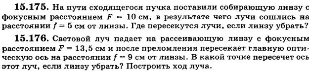 13. На собирающую линзу с фокусным расстоянием F 1 = 40 см падает параллельный пучок лучей. Где следует поместить рассеивающую линзу с фокусным расстоянием F 2 = 15 см, чтобы пучок лучей после прохождения двух линз остался параллельным? Укажите положение линз построением хода лучей в них. (0,25б) 14. Собирающая линза дает изображение источника в точке S’ на главной оптической оси. Положение центра линзы О и ее фокусов F известно, причем OF < OS’. Найдите построением положение источника S. (0,5б) 15. Определите построением положение светящейся точки, если два луча после преломления в линзе идут так, как изображено на рисунке. (0,5б)
