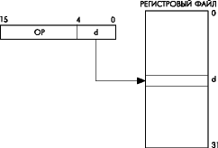 Адрес операнда содержится в 6 битах слова команды. Величина n определяет адрес регистра источника или регистра назначения.