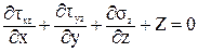 Аналогично запишем уравнения равновесия по двум другим осям координат: