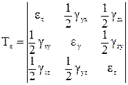 Как видно, формулы полностью аналогичны. Коэффициенты при направляющих косинусах являются составляющими тензора деформаций:
