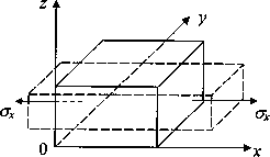 При таком нагружении происходит увеличение размеров в направлении оси Ох, характеризуемое линейной деформацией
